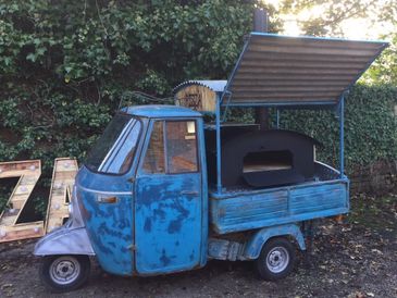 Our 1968 Piaggio Ape is fully loaded with an authentic wood fired pizza oven and affectionately named 'Bambino'.